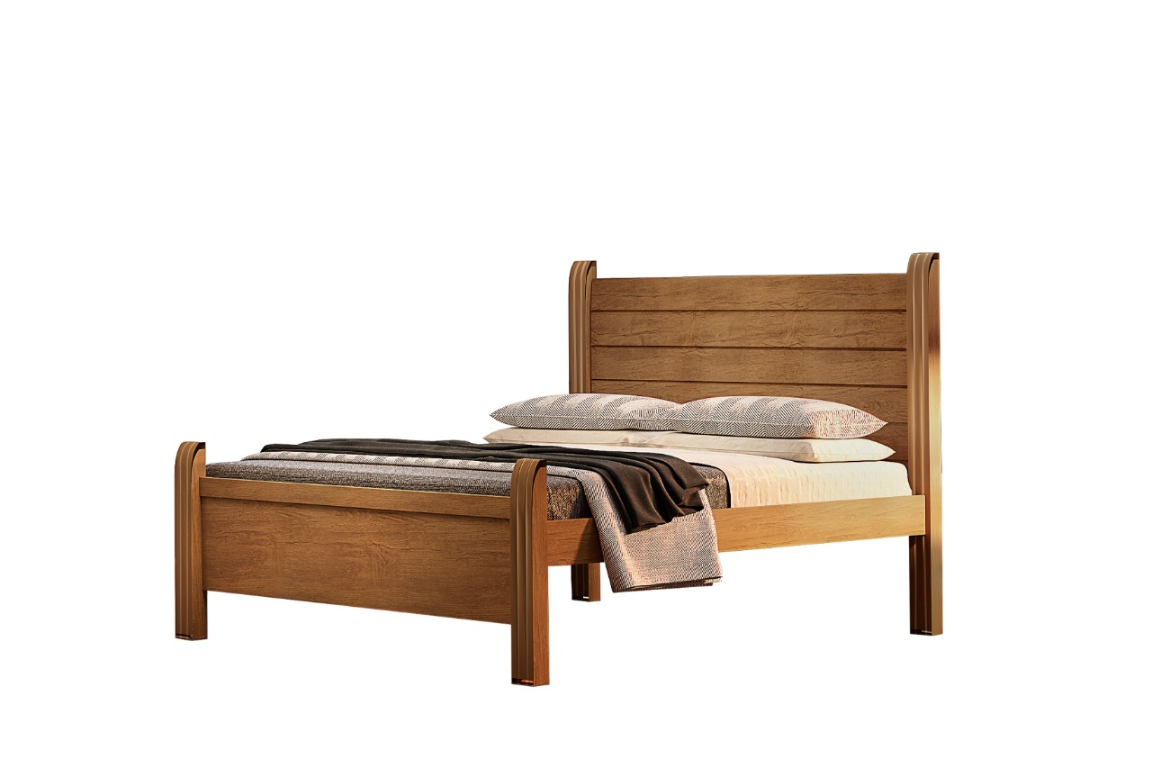 Cama de casal 100% mdf, com pés em madeira maciça e estrado reforçado. Tudo isso para garantir beleza, estabilidade e durabilidade ao seu móvel.