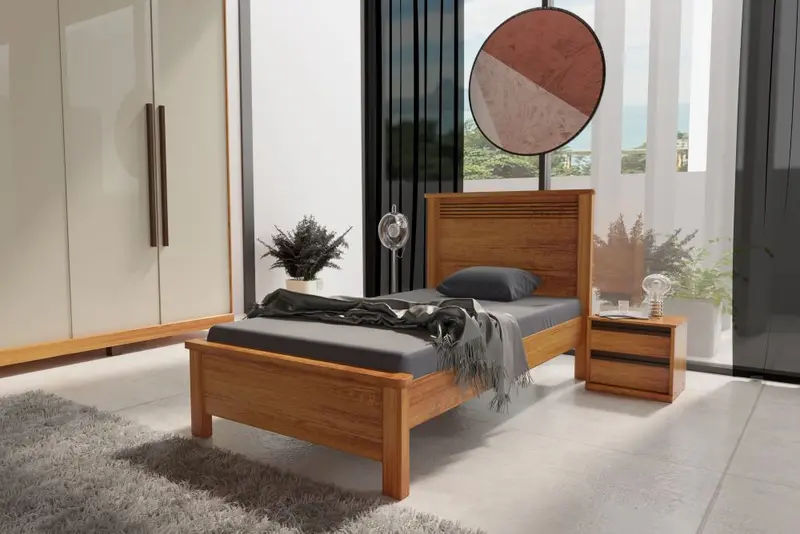 A cama de solteiro Plus é uma peça elegante e funcional, fabricada com MDF de alta qualidade, garantindo durabilidade e resistência. Seu design foi pensado para colchões de 88 cm, proporcionando um ajuste perfeito. Temos ela ns cores branca, noce, naturale e café.