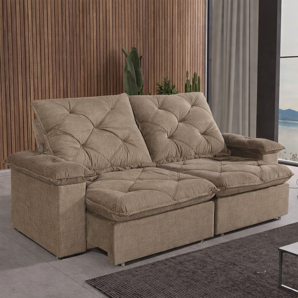Esse estofado possui assento retrátil com pillow mega top composto com espuma especial D33, encosto regulável por catraca com 5 estágios e enchimento das almofadas com fibra siliconada. O tecido possui um toque diferenciado, sendo classificado como Veludo Luxo ou como linho no caso do tecido 3025.