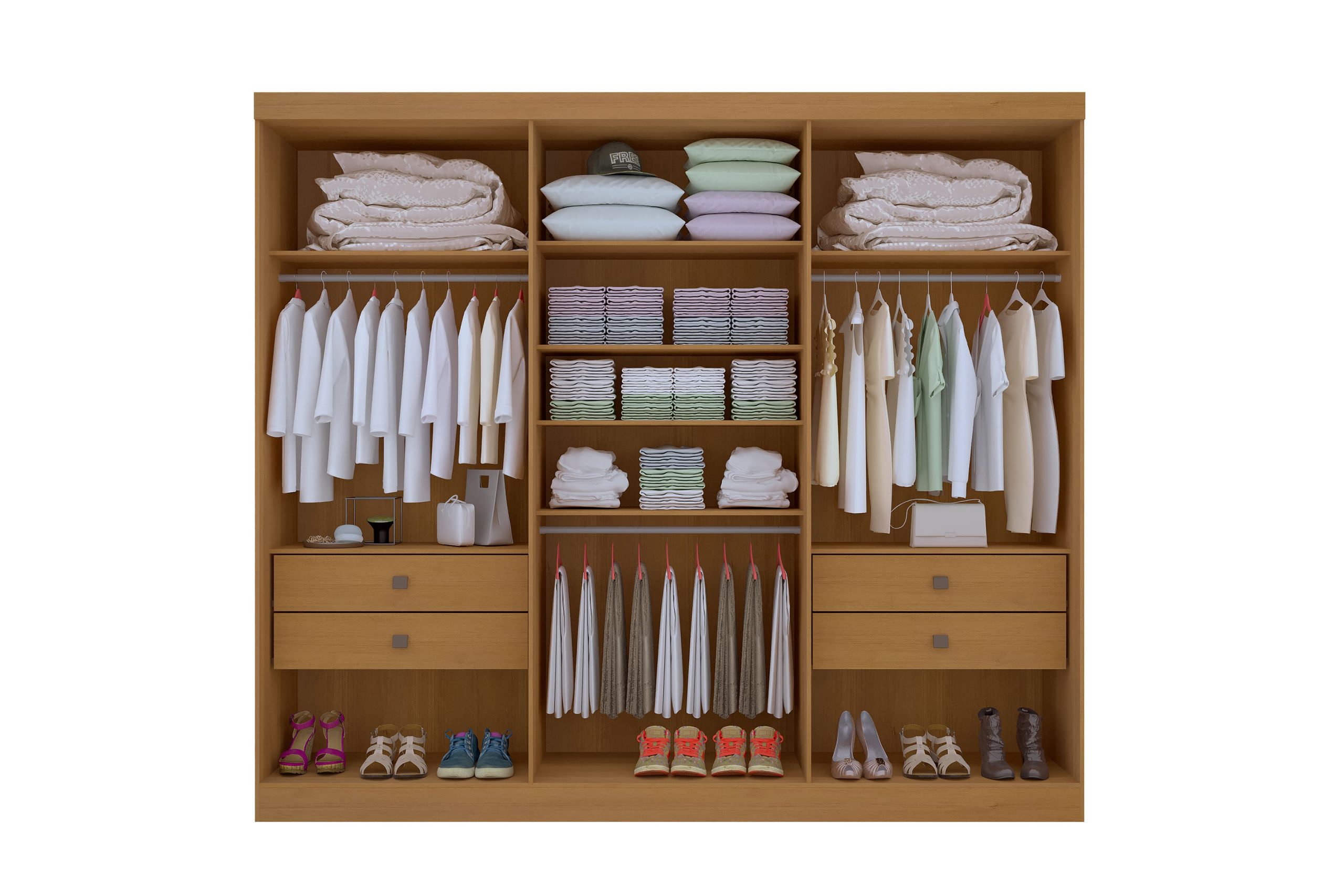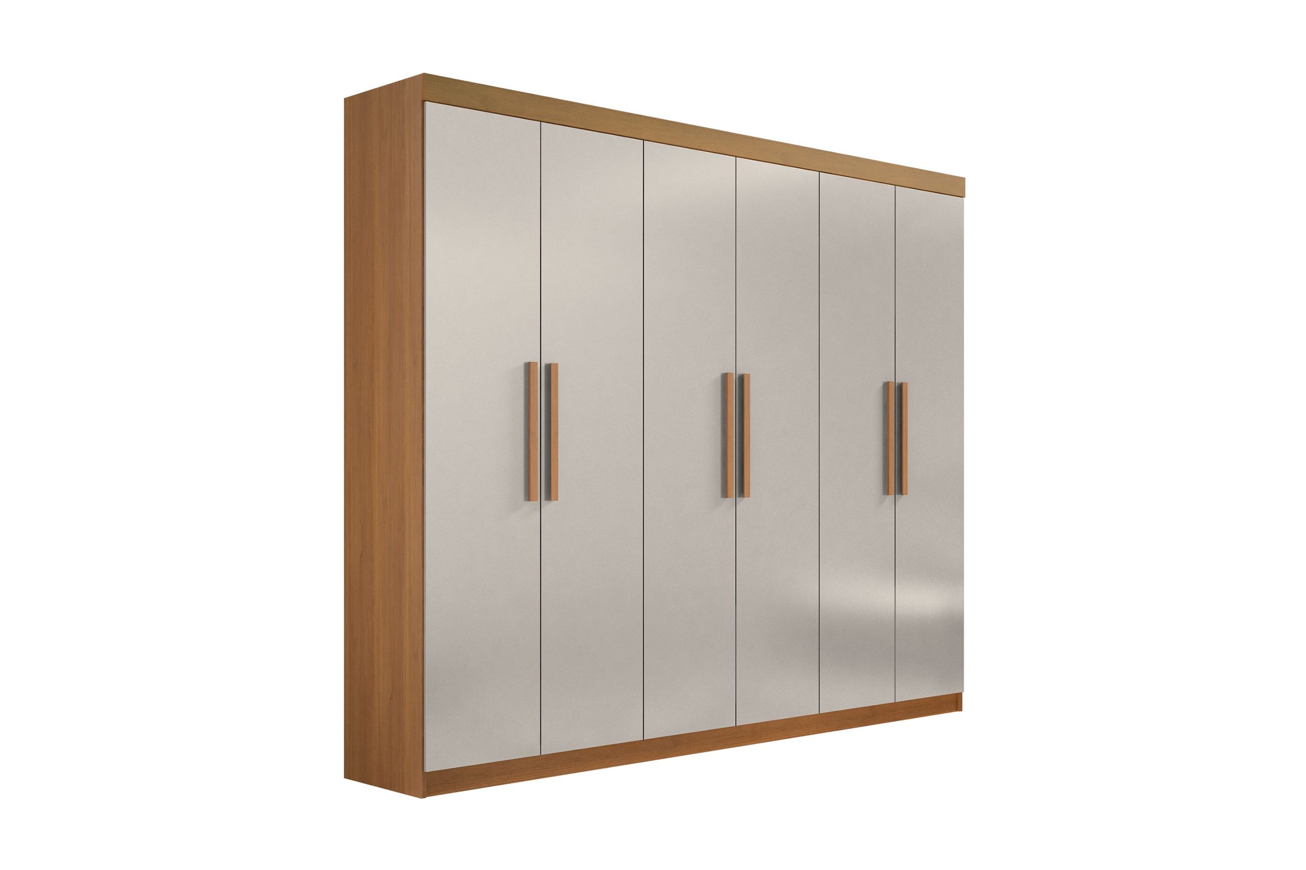 Roupeiro com 6 portas,100% mdf, com 4 gavetas internas com corrediças telescópicas, puxadores em madeira e cabideiros em alumínio