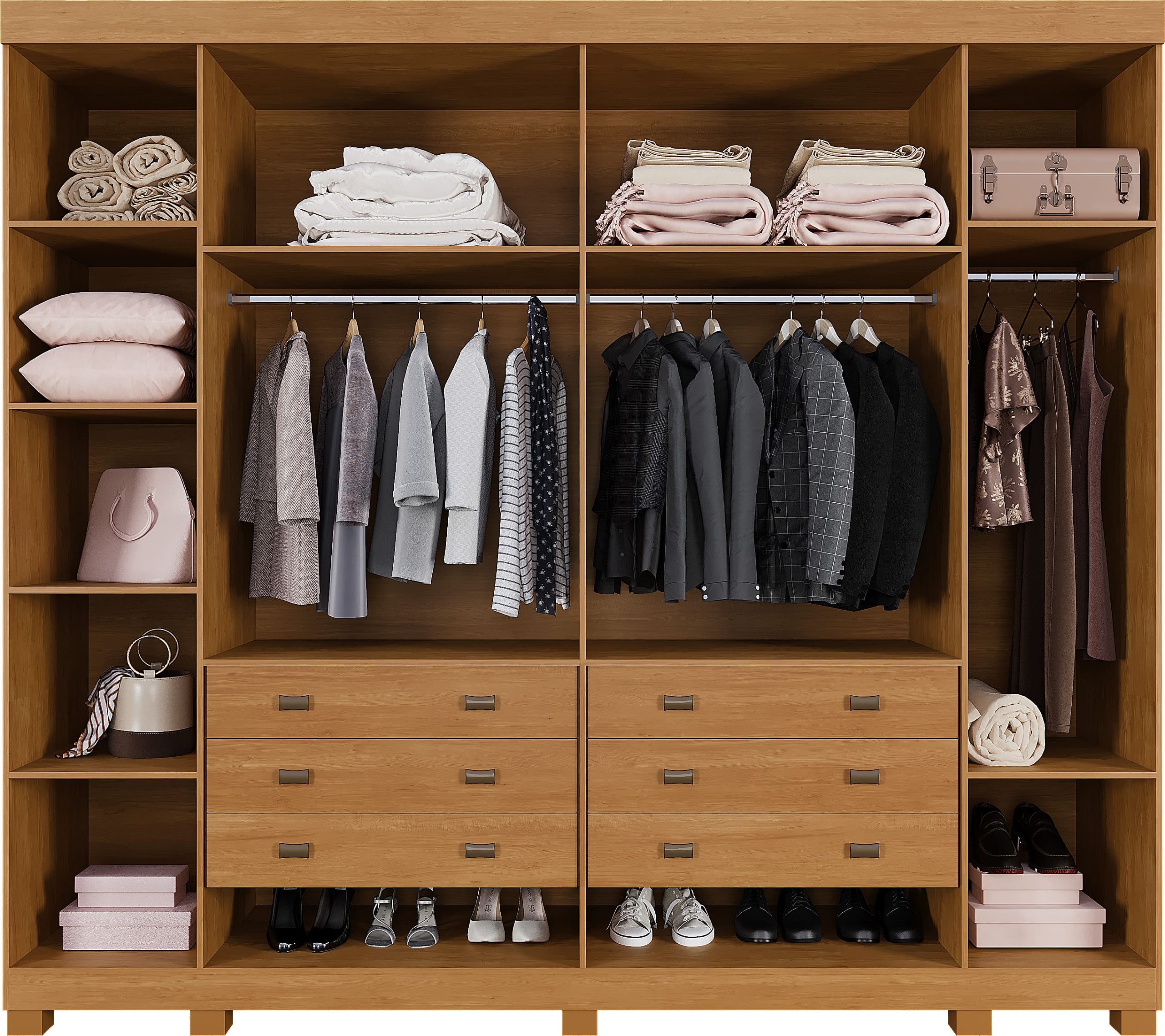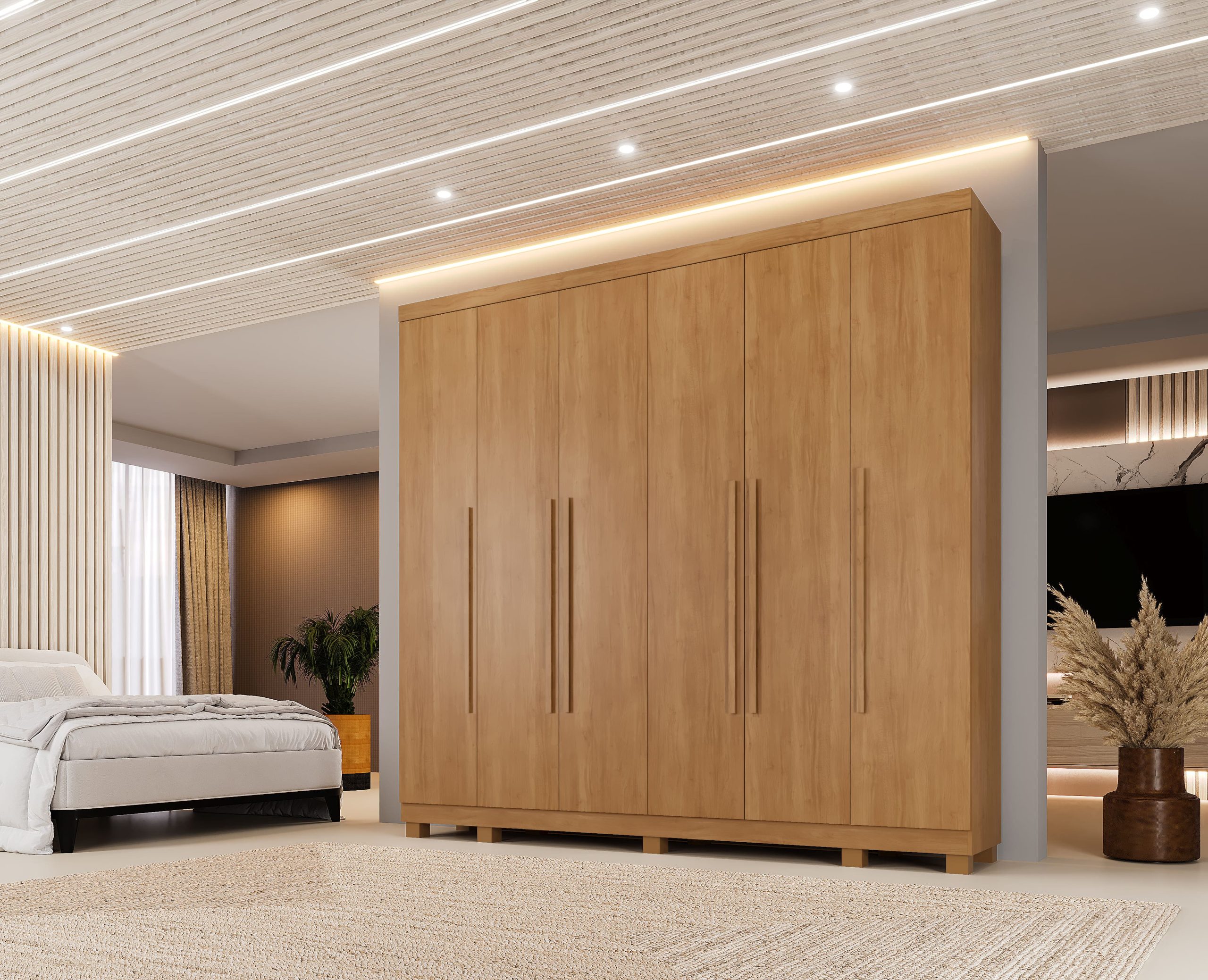 Roupeiro com 6 portas e 6 gavetas cinamomo