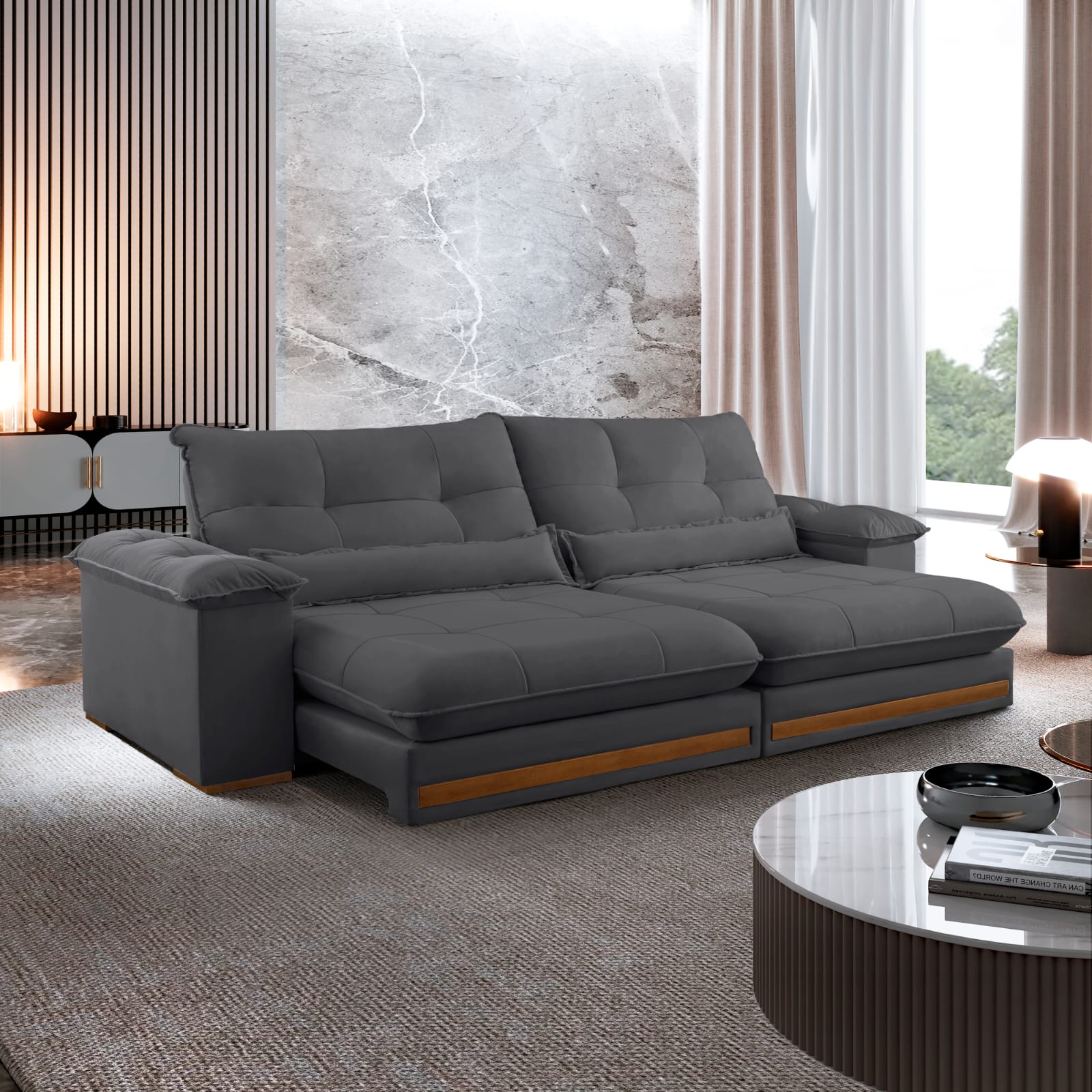 Sofá retrátil e reclinável com 2,50 de comprimento e catracas com 6 estágios